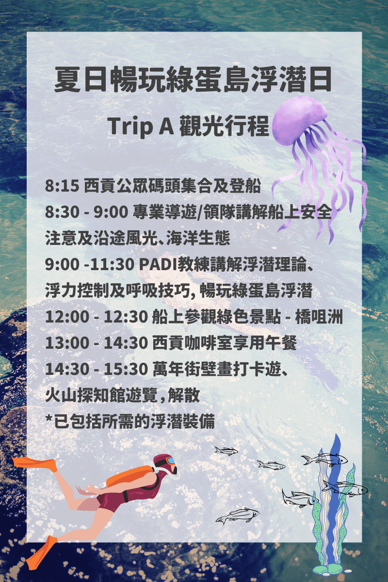 如果好似小編咁懶的朋友仔建議選擇Trip B,比自己訓到夠先開始綠蛋島探索海洋之旅^ ^