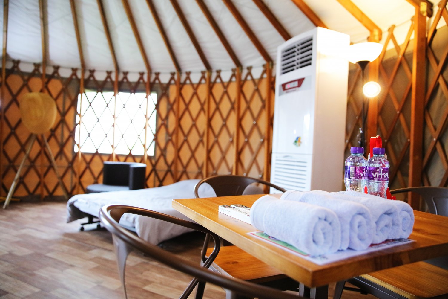 營帳內設備齊全,有齊冷氣、蚊帳、燈、床等設備,仲有獨立廁所 (但不在房間內),算係特別嘅體驗。